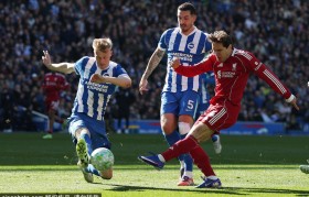 在英超第31轮的一场焦点大战中,布莱顿坐...